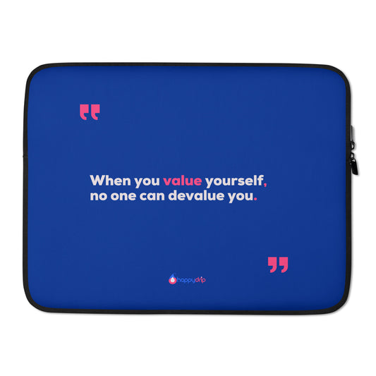 When you value yourself, no one can devalue you - Navy Blue Laptop Sleeve